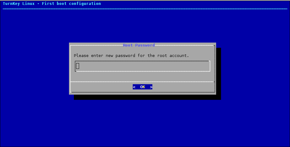 Welcome to TurnKey! You need to initialize this system first before you can use it. To do that you'll need to log into the root account via SSH. The turnkey-init initialization program should start automatically: